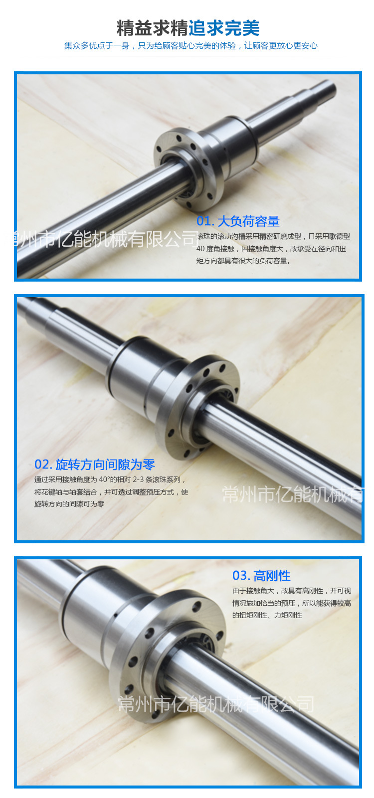 常州市億能機(jī)械有限公司市場(chǎng)部是滾珠花鍵、滾珠花鍵軸、滾動(dòng)花鍵、滾動(dòng)花鍵副、滾珠絲桿、加工中心高精度齒輪、精密花鍵長(zhǎng)軸*長(zhǎng)4000毫米等產(chǎn)品專業(yè)生產(chǎn)加工的私營(yíng)獨(dú)資企業(yè),公司總部設(shè)在常州市鐘樓區(qū)新龍路15號(hào),常州市億能機(jī)械有限公司市場(chǎng)部擁有完整、科學(xué)的質(zhì)量管理體系。常州市億能機(jī)械有限公司市場(chǎng)部的誠(chéng)信、實(shí)力和產(chǎn)品質(zhì)量獲得業(yè)界的認(rèn)可。歡迎各界朋友蒞臨常州市億能機(jī)械有限公司市場(chǎng)部參觀、指導(dǎo)和業(yè)務(wù)洽談。